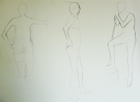 We were then taught how to measure the proportions with our hand and pencil which proved very useful. We had to split the body up to fit the head in 7 times and I think mine did improve as the session went one. One thing I definately need to keep practising though is my time. I nearly always seem to take too long getting the proportions correct. Getting a rough shape then focusing on them might be the way forward.